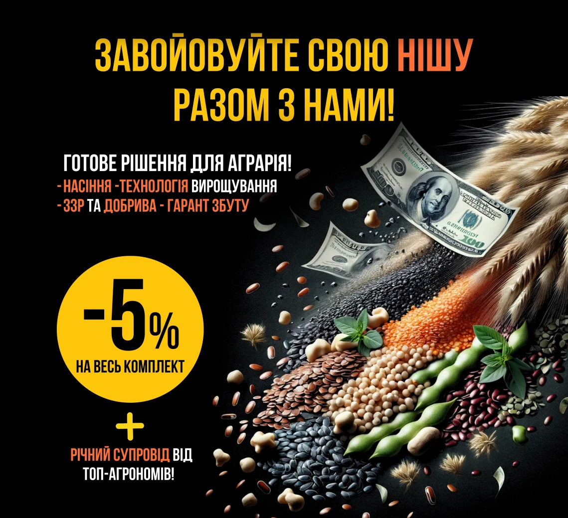 Отримай 5% знижки на товари що у комплекті та річний супровід агронома