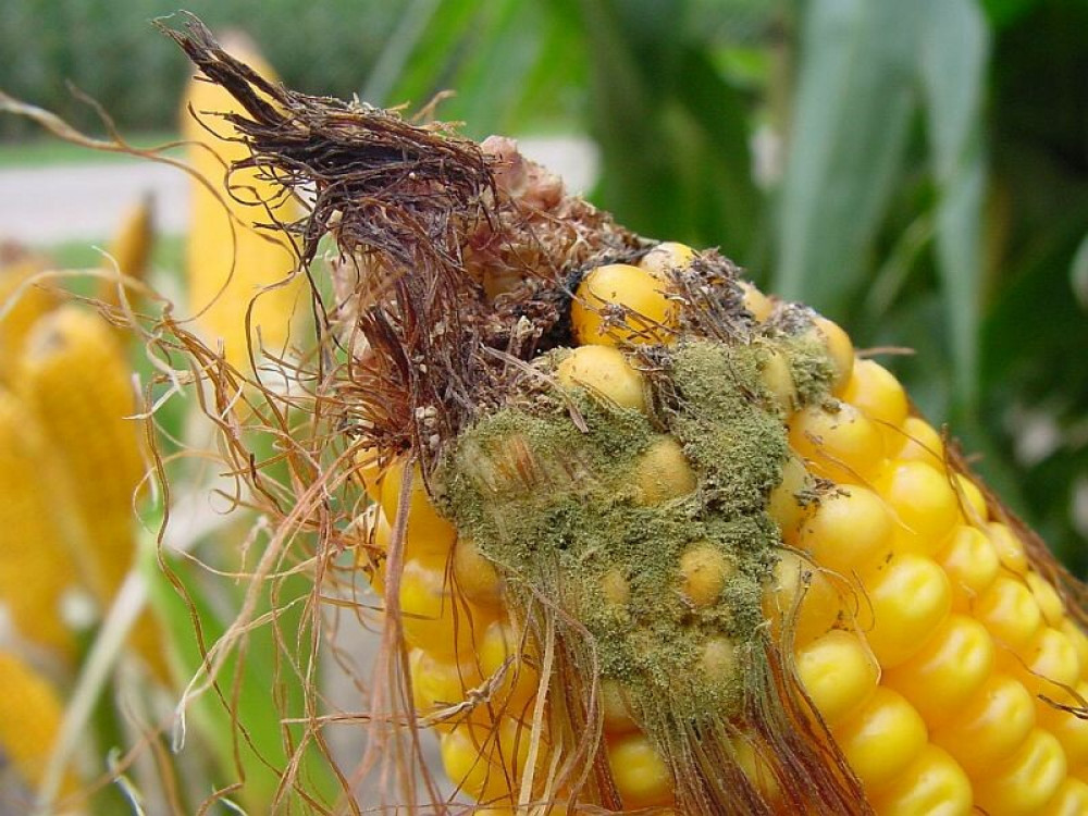 На уражених продуктах гриби утворюють колонії з цвілевим нальотом, який найчастіше має блакитно-зелений відтінок. Ці грибкові колонії виробляють афлатоксин — надзвичайно токсичну речовину, яка належить до класу мікотоксинів. Афлатоксини є потужними канцерогенами, які можуть викликати серйозні здоров'язагрожуючі реакції у людей і тварин при їх споживанні.