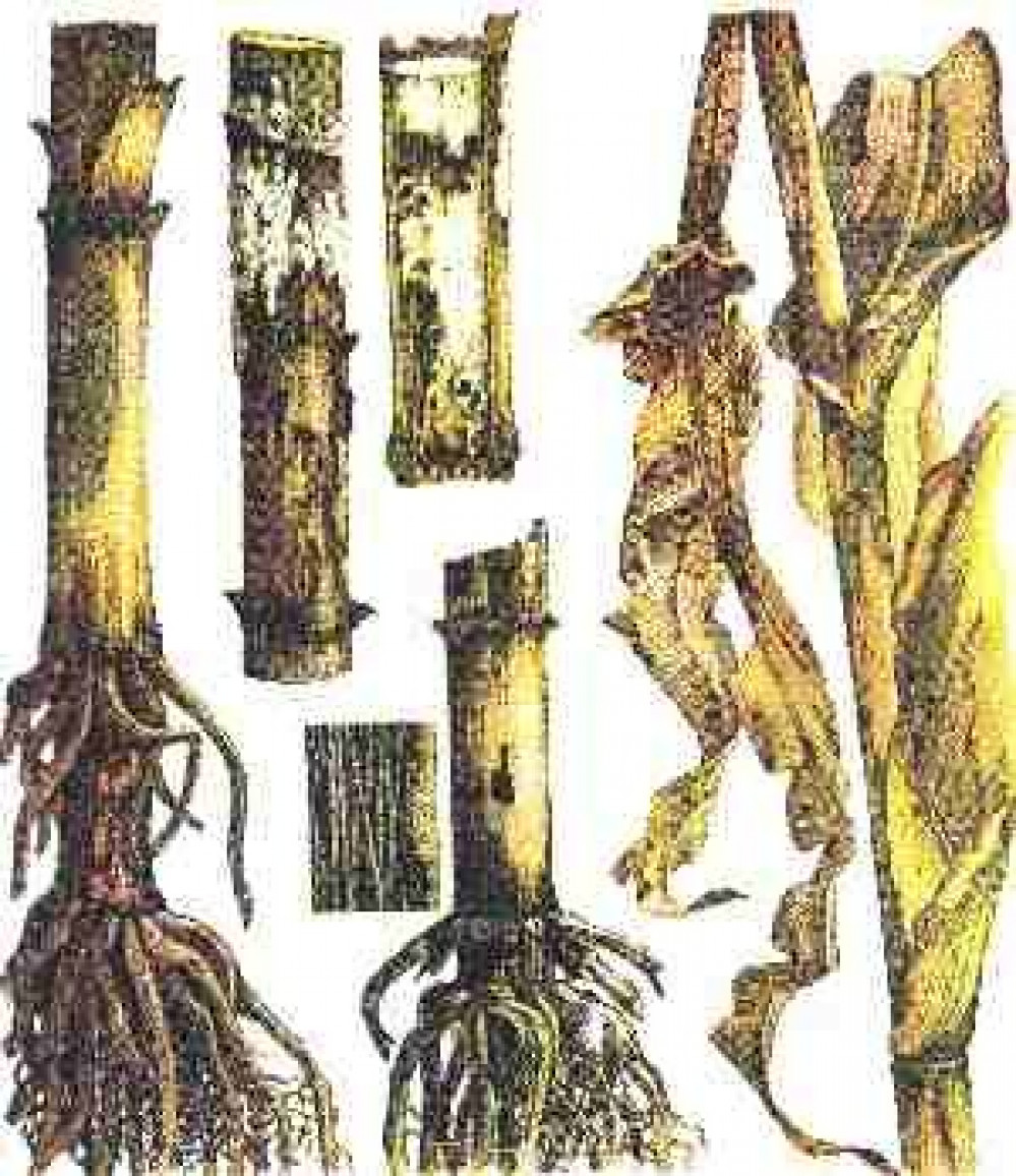 Патологія проявляється в пожовтінні та побурінні нижньої частини стебла і кореневої системи. На уражених ділянках можна помітити численні дрібні чорні крапки — склероції, що розташовуються під епідермісом у вигляді точок. Паренхіма серцевини в основному руйнується. Захворювання активно розвивається у період зрілості, атакуючи нижнє міжвузля стебла, що призводить до втрати його еластичності і ламкості. Насіння, заражене грибом, чорніє і втрачає життєздатність. Збудник має багато форм, в тому числі ті, що не утворюють спор і характеризуються різною формою склероціїв.