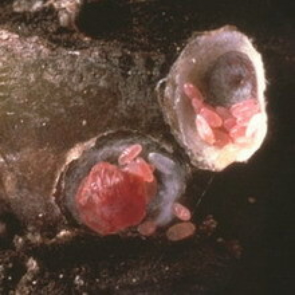 - Личинка першого віку червонувато-рожева, а другого віку схожа на дорослу самку.