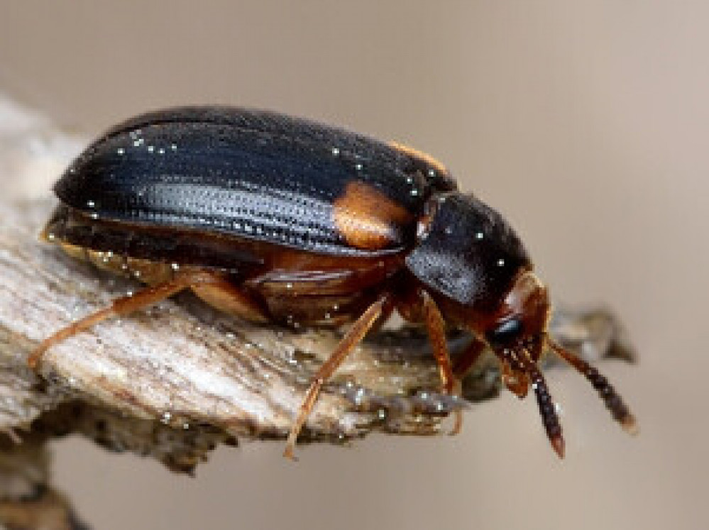 Грибоїд чотирьохплямистий - це поліфагний шкідник, який живиться зерном різних культур за умови, що вологість зерна становить 13% і більше. Найбільшу шкоду він завдає кукурудзі, пшениці, ячменю і просу при вологості 16% і вище.