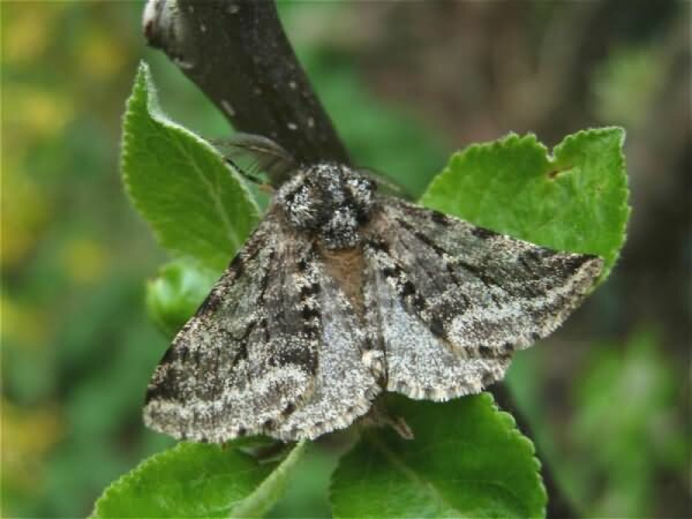 - Метелик: має розмах крил 35 – 40 мм. Основне забарвлення крил жовтосіре або попелястосіре, з бурими смужками і чорними серпоподібними плямами.