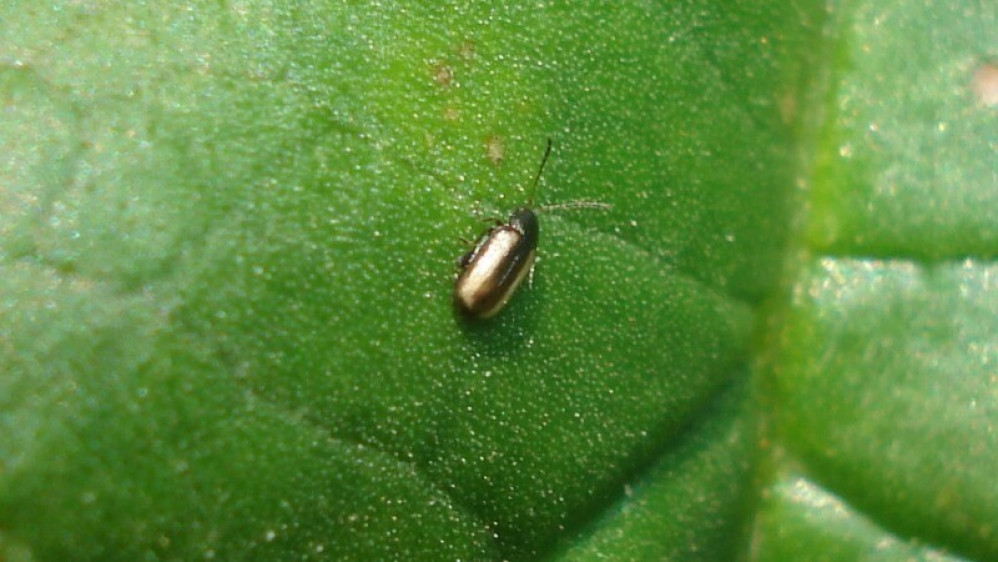 Дорослі особини мають довжину 2,7-3,8 мм, колір їх тіла варіюється від жовтого до солом'яно-жовтого, при цьому надкрила покриті дрібними точками та оздоблені темно-коричневою поздовжньою смугою посередині.