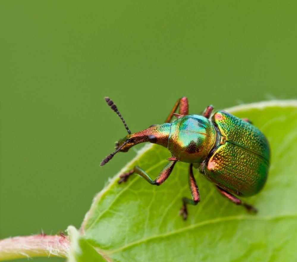Доросла особина має довжину 6-9 мм і золотисто-зелене забарвлення з темно-синім металевим відливом. Її надкрилки покриті волосками. Самці вирізняються шипами на боках передньої спинки, що направлені вперед. Яйця овальні, довжиною близько 1 мм, спочатку білі, а потім поступово жовтіють. Личинки мають каламутно-білий колір, довжиною 6-8 мм, без ніжок, з коричневим головним щитком. Лялечки білі, 5-7 мм в довжину, спина покрита волосками.