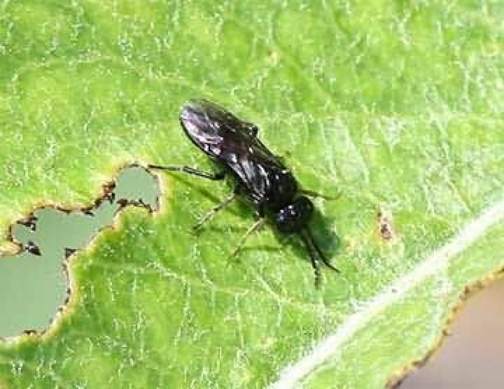 Пошкоджує вишню, черешню, грушу, глід, менше — сливу, терен, айву, горобину, кизильник, яблуню, іргу. Гусениці молодших віків вигризають м'якуш листка невеликими плямами, старших — скелетують листя, залишаючи лише сітку жилок. Більш значної шкоди завдає друге покоління шкідника.