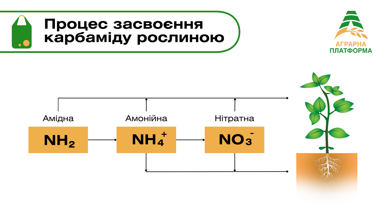 Когда карбамид вносится в основание, фермент уреаза расщепляет его на аммиак и углекислый газ. В процессе разложения могут происходить потери азота в виде газа NH₃, составляющие от 15 до 60%, в зависимости от погодных условий и увлажненности основания. Чтобы избежать потерь и обеспечить растения азотом в критические моменты развития, применяются ингибиторы уреазы, которые заполняют процесс разложения и продолжают доступность азота для культурных растений.