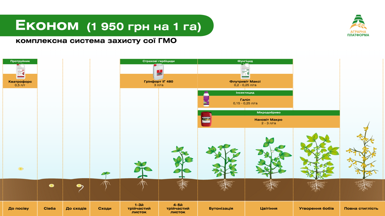 Аграрная Платформа рекомендует использовать комплексную систему защиты ГМО сои, разработанную лучшими специалистами. Вместе с нами Вы внесете вклад в свой урожай!