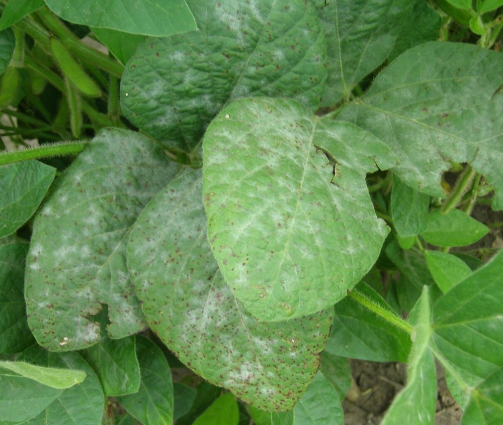 Это заболевание проявляется формированием беловатого паутинного или мучнистого налета на верхней стороне листьев, стеблях и бобах. Со временем налет уплотняется и приобретает серый цвет, а на поверхности начинают формироваться черные пятнышки, которые являются склероциями – плодовыми телами гриба.
