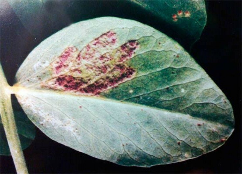 - На стеблях и бобах образуются расплывчатые хлоротические пятна.