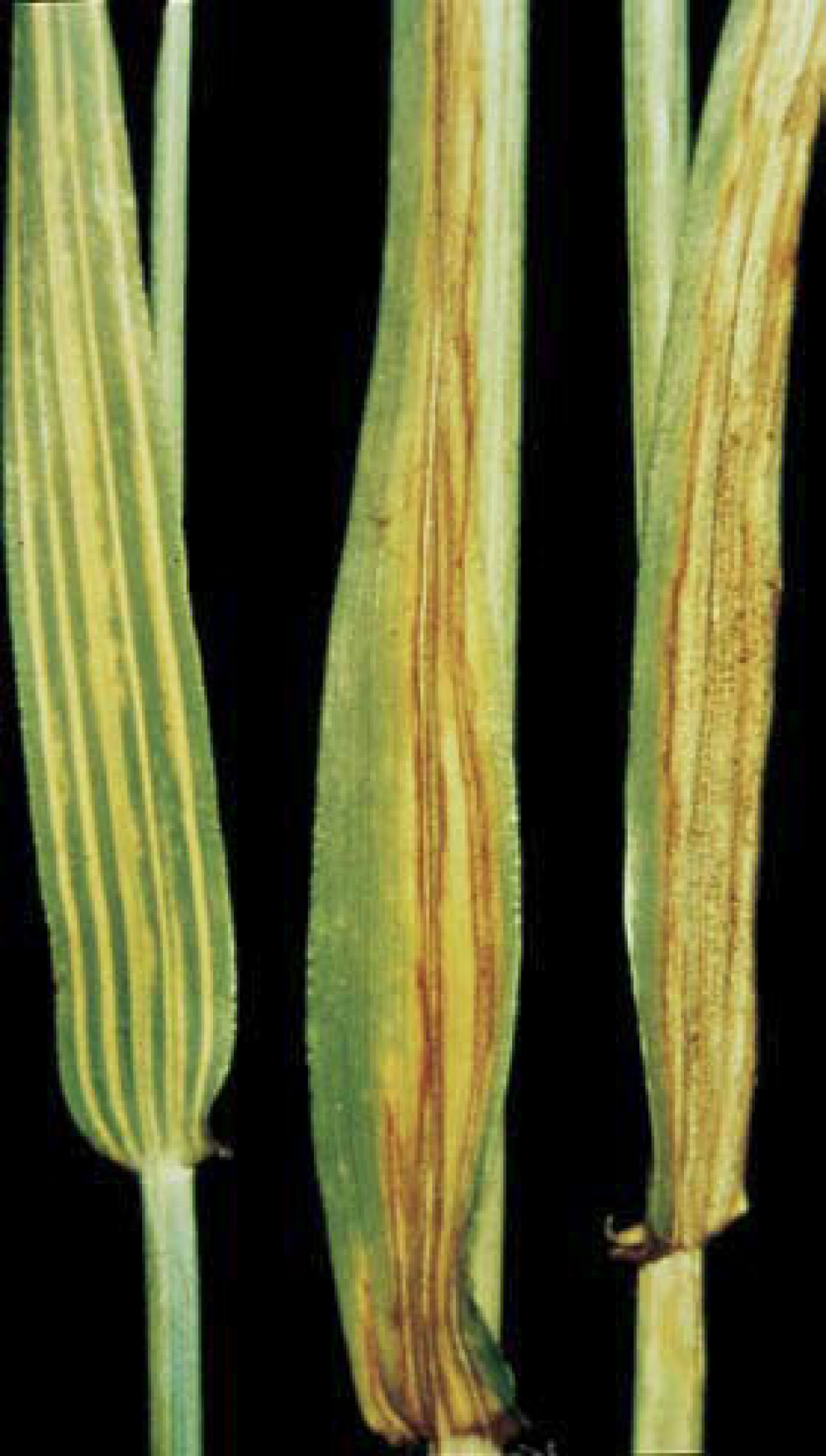- Пятна и полосы могут поражать листья, влагалища, стебли, а также колосья.