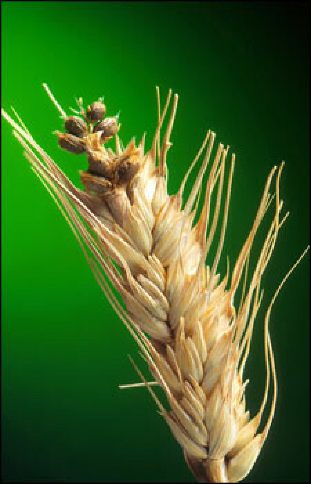 - По мере развития мицелий в колосе трансформируется в темные плотные фрагменты, из которых в дальнейшем формируются теллиоспоры.