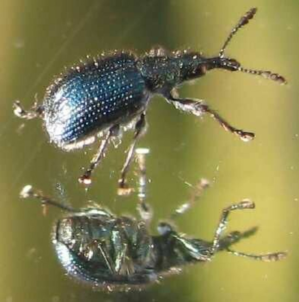 - Жук: Длина 2,5 –; 3 мм, синего цвета с металлическим блеском, покрытые волосами и продольными крапчатыми бороздками на надкрыльях.