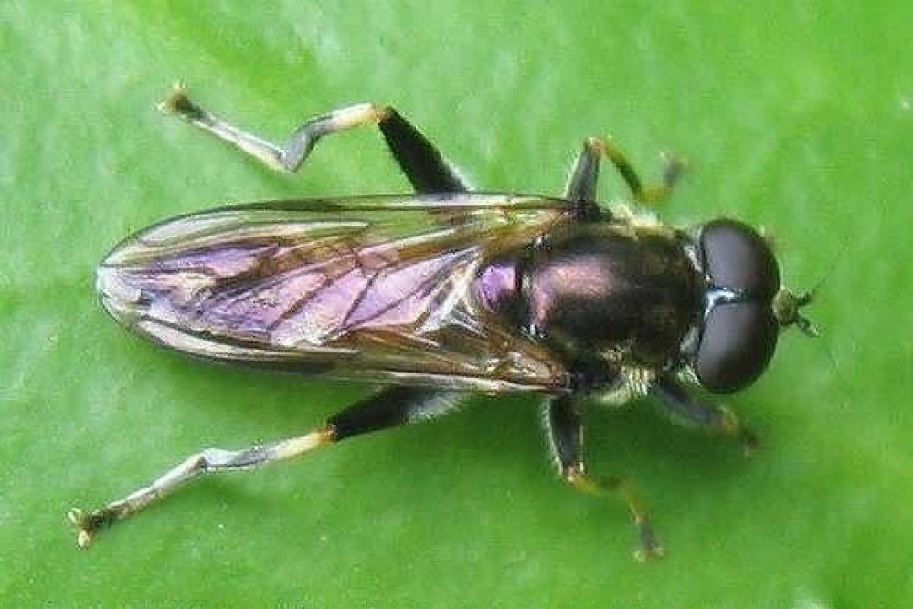 - Взрослые мухи имеют длину 4-5,2 мм, бархатно-черную окраску с легким припылением.