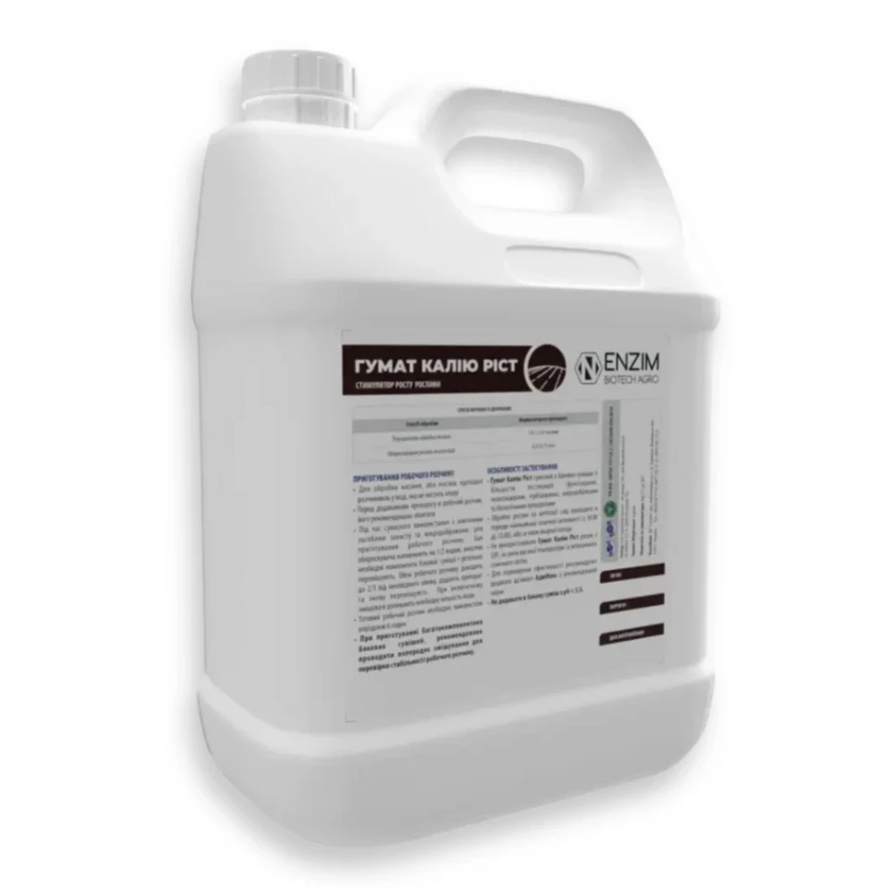 ГУМАТ КАЛІЮ РІСТ – це стимулятор росту рослин та антистресант, який підвищує підвищену стійкість рослин до стресових умов, стимулює їх розвиток та покращує якість врожаю.
