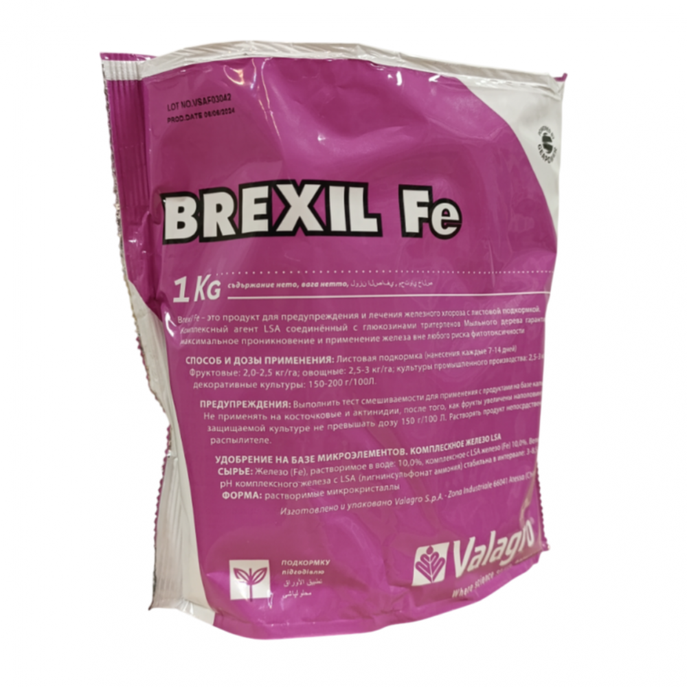 Brexil Fe — високоефективне хелатне мікродобриво на основі лігносульфонату (LSA), створене для оперативного усунення дефіциту заліза та поліпшення фізіологічних процесів у рослині. Препарат забезпечує швидке проникнення елементів живлення в листок, підвищує стійкість рослин до стресів та покращує товарні якості врожаю.